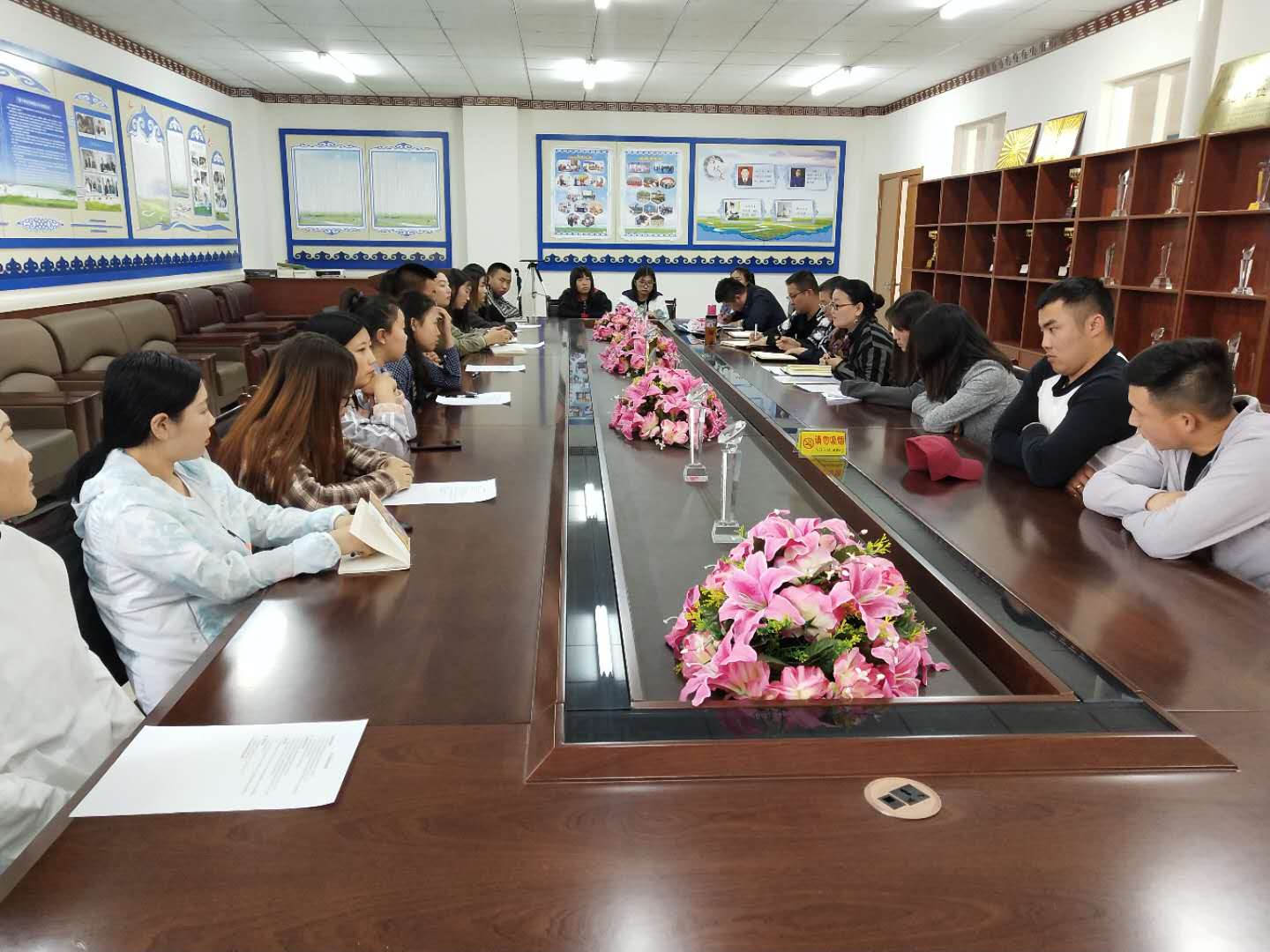 为了了解蒙古学学院学生对学院教育教学、教学管理、教学服务、教师师德师风等方面的情况,5月16日下午,蒙古学学院召开2018-2019学年第二学期期中教学师生座谈会。蒙古学学院教学科科长英雄主持会议,院长南斯力玛、副院长呼和满都拉、学前教研室主任娜仁图雅、教师代表吴木其尔、红梅以及每班派三名学生代表参加了本次座谈会。