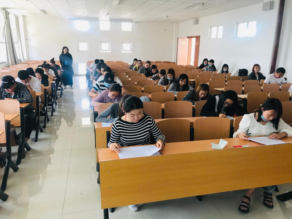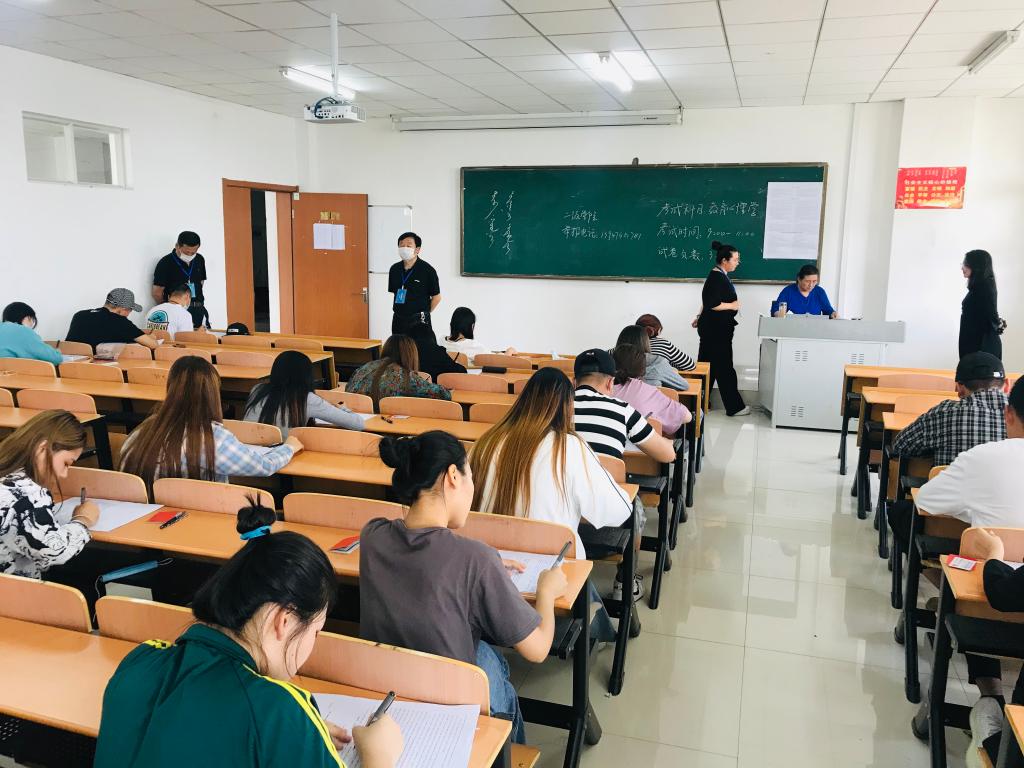 考试过程中,监考教师们认真负责,提前到达考场并安排考生座位,考生们佩戴口罩,间隔一米以上距离排队进行体温检测后凭身份证、学生证入场。进入考场后,考生分散就坐,认真答题,遵守考场纪律。教室通风情况良好,考场秩序井然,考试进展顺利。考试结束后,监考教师组织考生迅速有序离开考场,避免扎堆聚集。