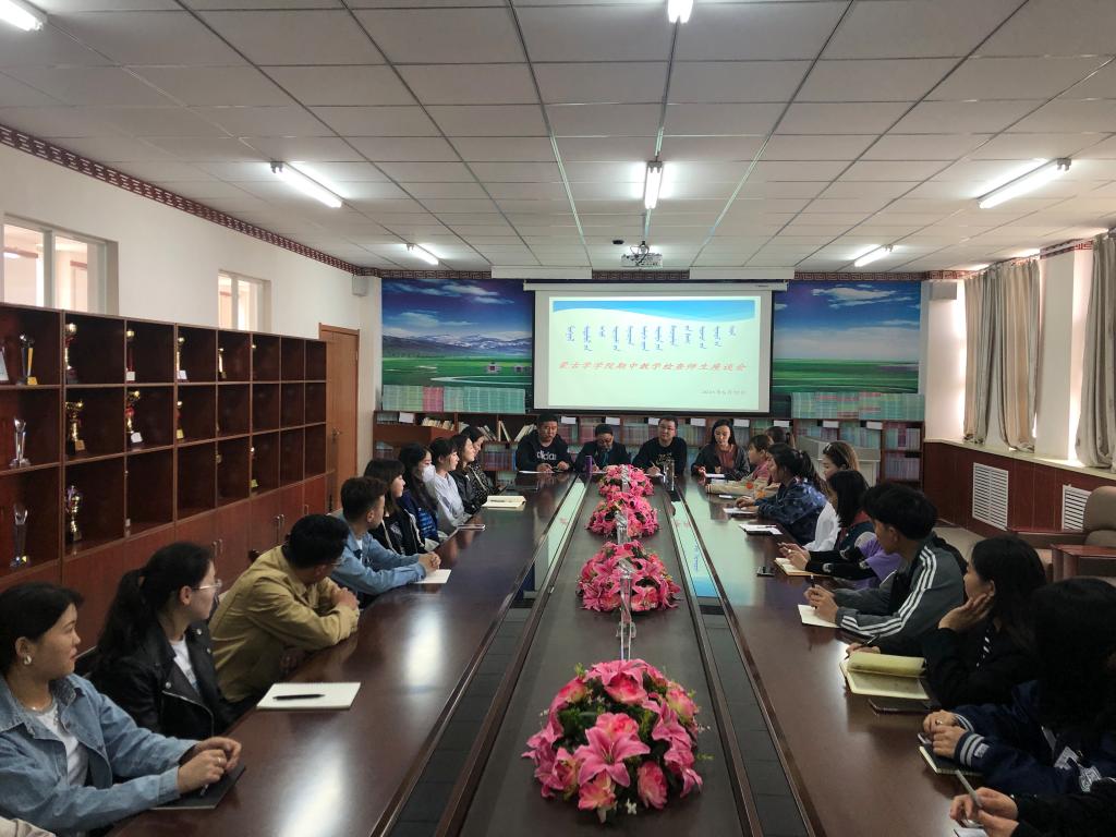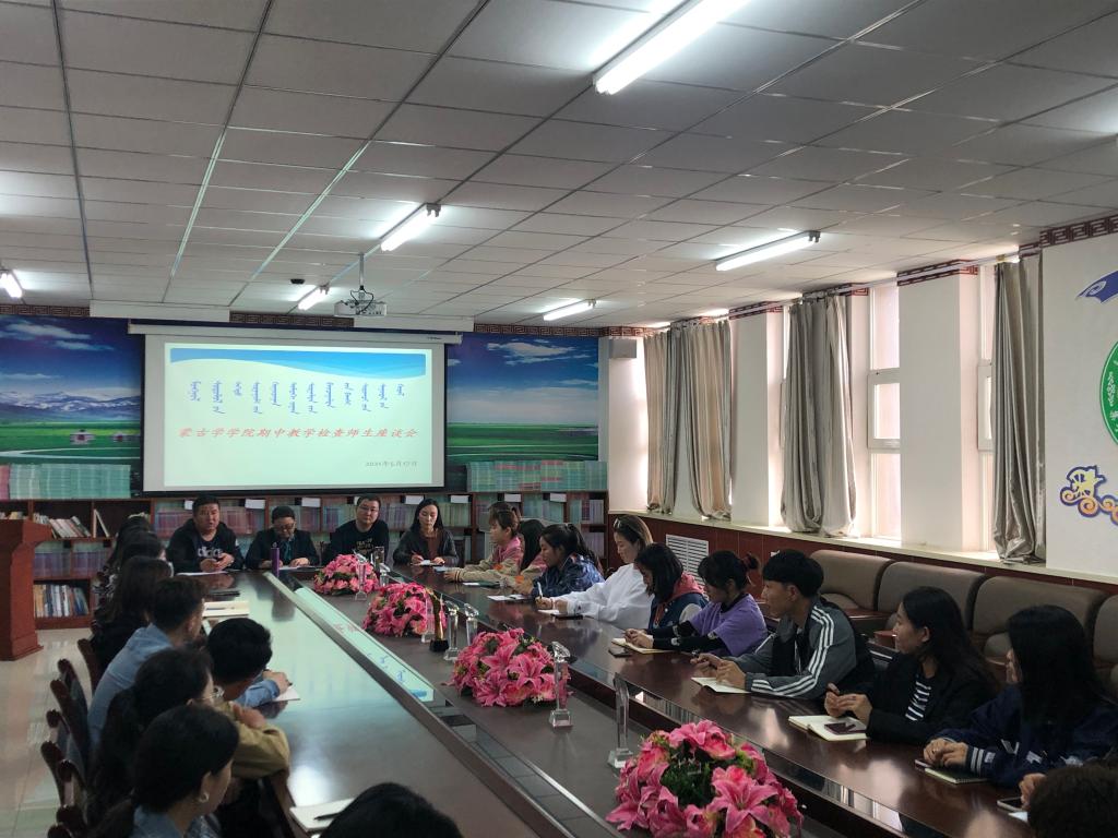 5月17日,学院召开本学期期中教学检查学生座谈会。副院长呼和满都拉,学前教育(蒙授)教研室主任图雅、语言教研室负责人铁梅、教学科负责人英雄出席座谈会,在校11个教学班级的学生代表参加了座谈会。会议由英雄老师主持。