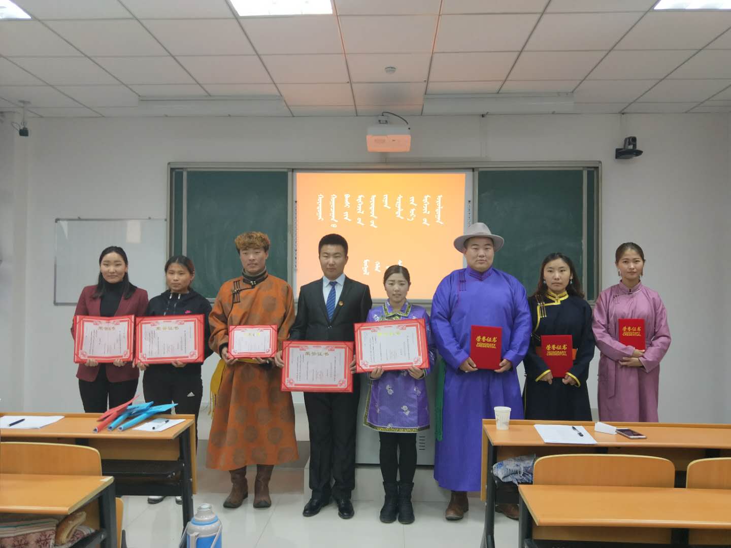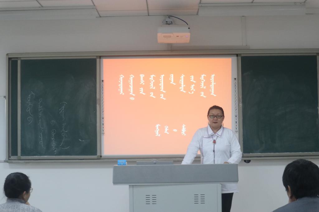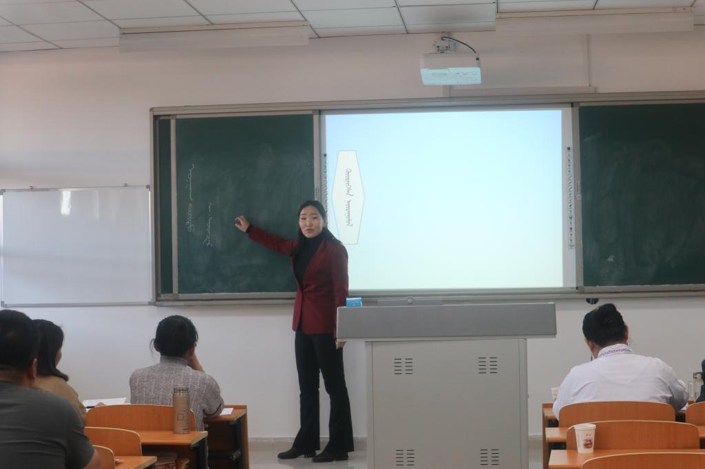 为提高师范生教学技能,展现学生风采,11月3日下午,蒙文系第二届师范生教学技能大赛在蒙文系35402教室举行。蒙文系副主任孟美英老师、吉日格拉老师、贺喜格都楞副教授、学前教育教研室主任娜仁图雅副教授、文学教研室主任色音套格特博士为此次比赛担任评委。