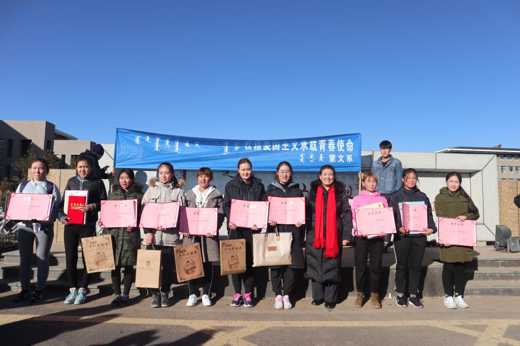 为纪念“一二·九”学生爱国运动82周年,响应十九大报告中培养学生们的历史责任感,激励学生们的爱国热忱,广泛开展全民健身活动、加快推进体育强国建设的号召,2026世界杯官方合作网站蒙古学学院于12月8日下午13时举办了以“弘扬爱国主义 ,承载青春使命”为主题的冬季越野赛,110余名学生参加比赛。