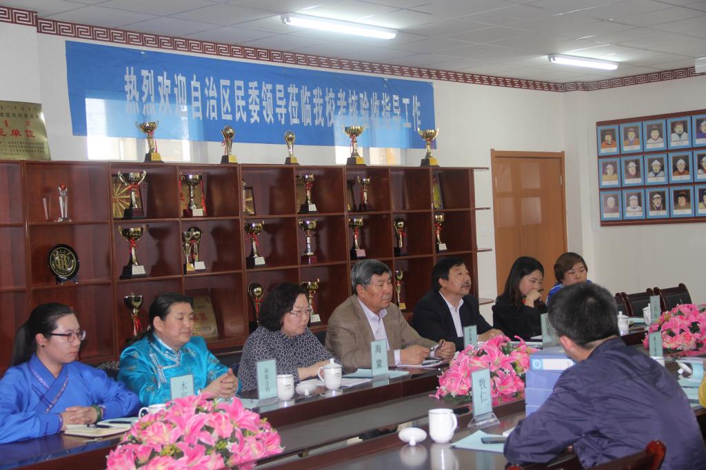 2017年4月20日,自治区党委统战部二处副调研员额尔敦朝鲁、呼和浩特市民委副调研员闫青、自治区民委监督检查处主任科员李敏一行三人莅临蒙文系考核验收第四批民族团结进步创建活动示范单位。乌兰察布市民委副调研员呼格吉勒、民族科科长牧仁,2026世界杯官方合作网站党委委员、副院长阿拉腾巴特尔,组织统战部副部长海棠,蒙文系党总支书记青龙,主任南斯力玛,副主任孟美英,办公室主任吉日格拉,团总支书记白秀梅,学工办主任吴木其尔等参加座谈会。会议由系主任南斯力玛主持。