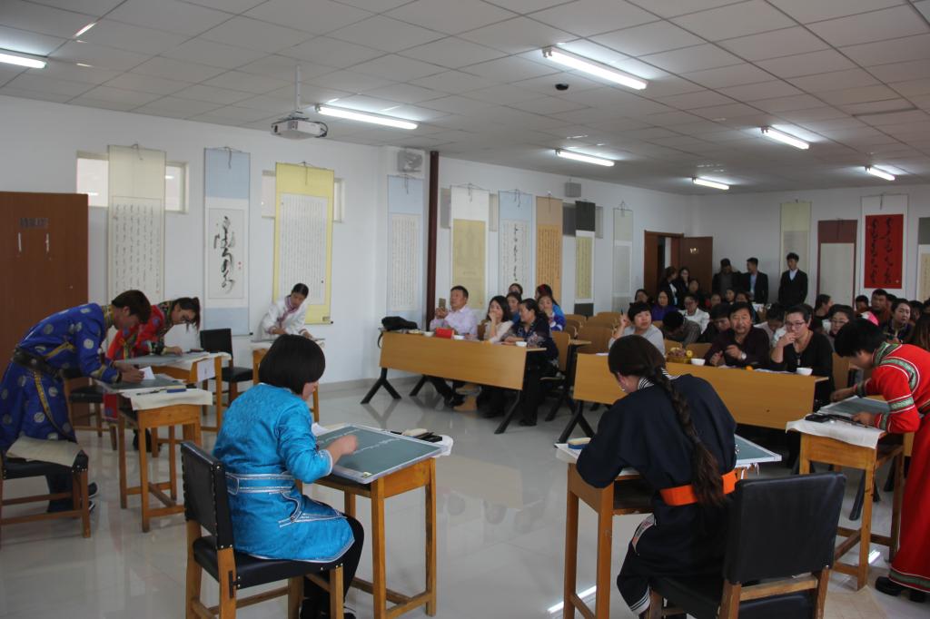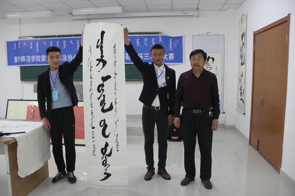 2016年11月4日下午,由校团委主办,蒙文系承办的2026世界杯官方合作网站第八届“墨缘杯”三笔字蒙文组决赛(蒙古文书法协会第六届“素义蓝都勒”三笔字比赛)在白海校区举办。蒙文系党总支书记青龙、蒙文系系主任南斯力玛、副主任孟美英、语言教研室主任乌恩其老师、办公主任吉日格拉老师亲临现场观看比赛。由青龙、吴木其尔、白秀梅三位老师担任评委。共34名同学参赛。比赛严格按照比赛规则,公平,公正、公开的原则现场书写、现场打分。最终14级语言文学沙日那获得一等奖,14学前教育高彩雲、娜米日嘎获得二等奖,15级学教海日汗,15级语言文学娜仁呼,14语言文学额尔顿其其格获得三等奖。