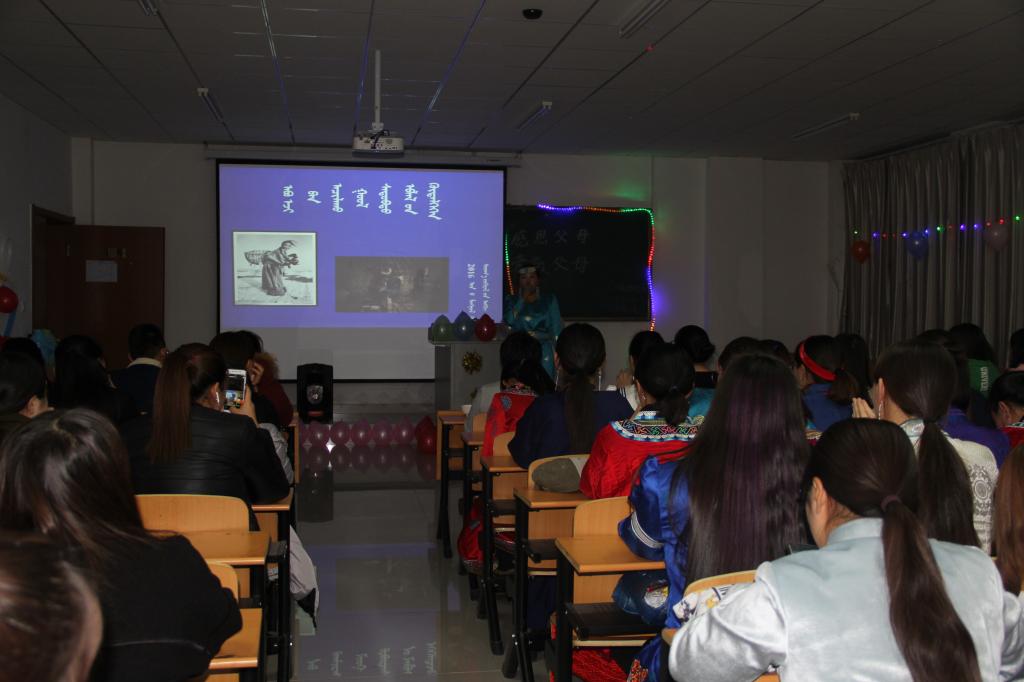 11月17日晚,16级蒙古语言文学班举办“算算亲情账、感知父母恩”主题团日活动,活动内容丰富,主题鲜明,歌曲、舞蹈、小品、猜字游戏等使现场的同学带到团活动的氛围当中。俗话说“天上太阳,人间母爱;父爱如山,母爱似水”通过此项活动同学们表达自己内心的想法,内心感受,铭记父母恩,感知父母恩,做有爱心、孝心、担当的好儿女,做有理想、有追求、有担当、有作为、有品质、有修养的“六有”大学生。