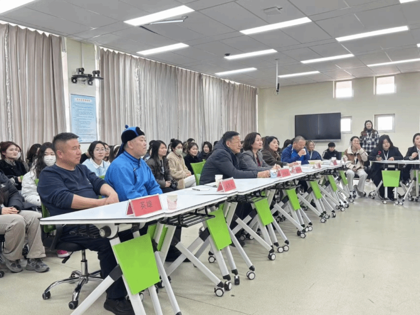 学院党总支书记额尔敦其其格、院长孟美英、副书记朝格图及师生代表近70人观看比赛。