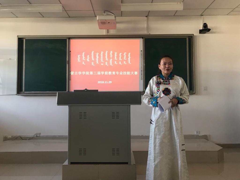 参加本次教学技能比赛的由2015、2016、2017级各班的15位学生,由学前教研室主任娜仁图雅、贺特日格乐、巴特日格乐三位老师担任评委。比赛经过五个小时的角逐,最终2017级学前教育蒙班萨出仍贵荣获第一名,2017级学前教育蒙班藏登和2017级学前教育汉班海娜荣获第二名,2017级学前教育蒙班乌日很、2016级学前教育班朝鲁蒙、2016级学前教育班阿如罕荣获第三名。