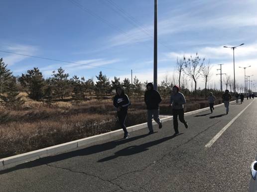 在南院长发出开跑信号后参赛的同学们冲出起跑线。虽然天气寒冷,但丝毫没有影响同学们的比赛热情。比赛期间,参赛的同学们全力以赴,展现了当代大学生拼搏的风采。