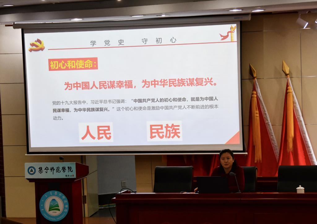 张爱梅在“学党史,守初心”的专题讲座中,贯穿历史发展主线,从历史发展过程中“初心”的形成、中国共产党历史中的“初心”实践、新时代“初心”的内涵和意义等方面解读了中国共产党人的初心和使命就是:为中国人民谋幸福,为中华民族谋复兴。