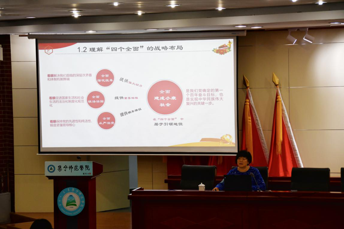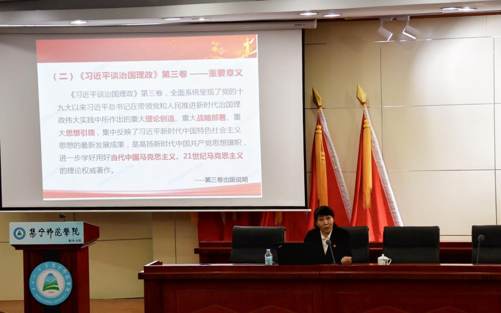 温馨在“习近平新时代中国特色社会主义思想”的专题讲座中,从创立背景、科学内涵、历史地位等方面进行了讲解。最后说明习近平新时代中国特色社会主义思想这是马克思主义中国话的最新成果,新时代的精神旗帜,也是实现中华民族伟大复兴的行动指南。
