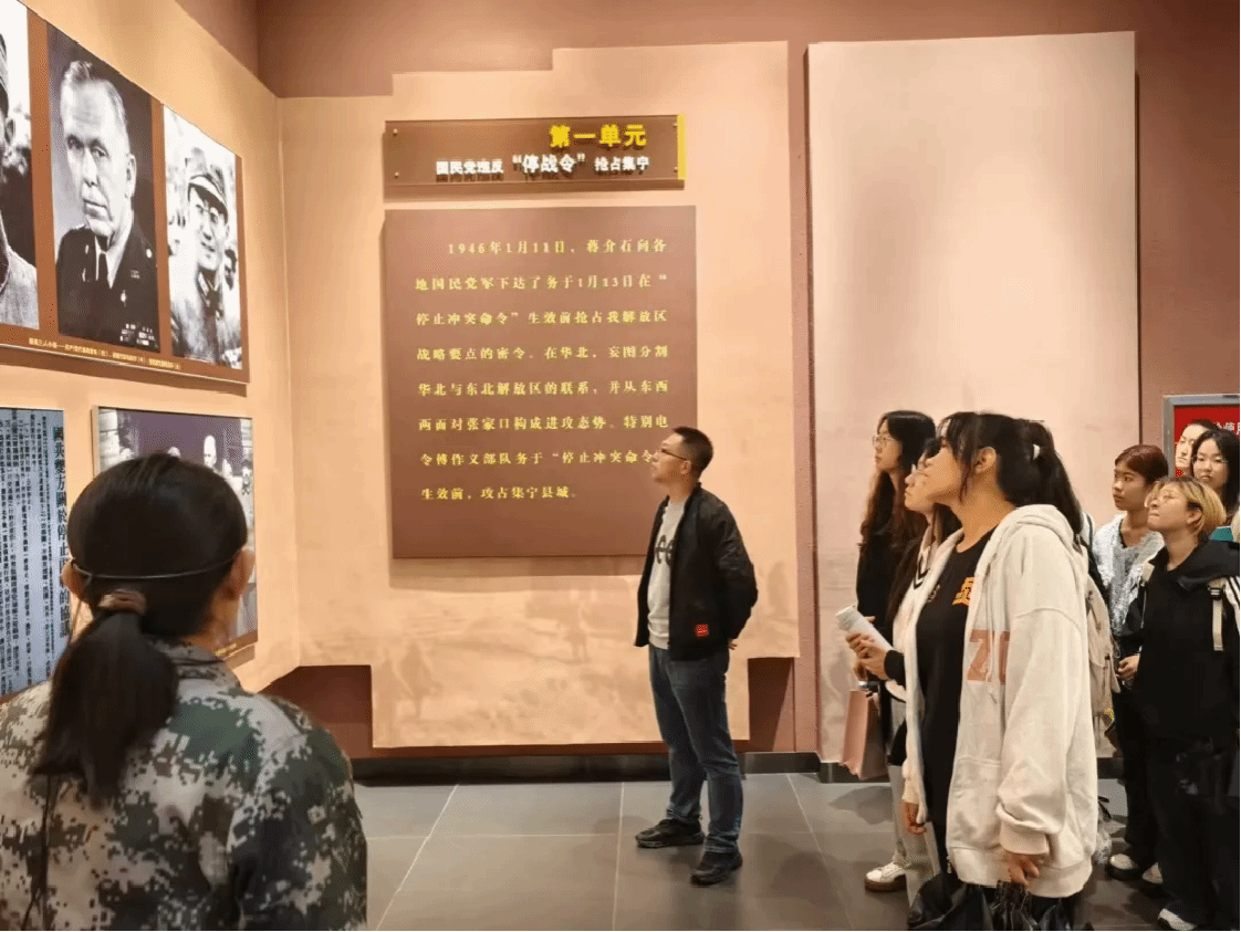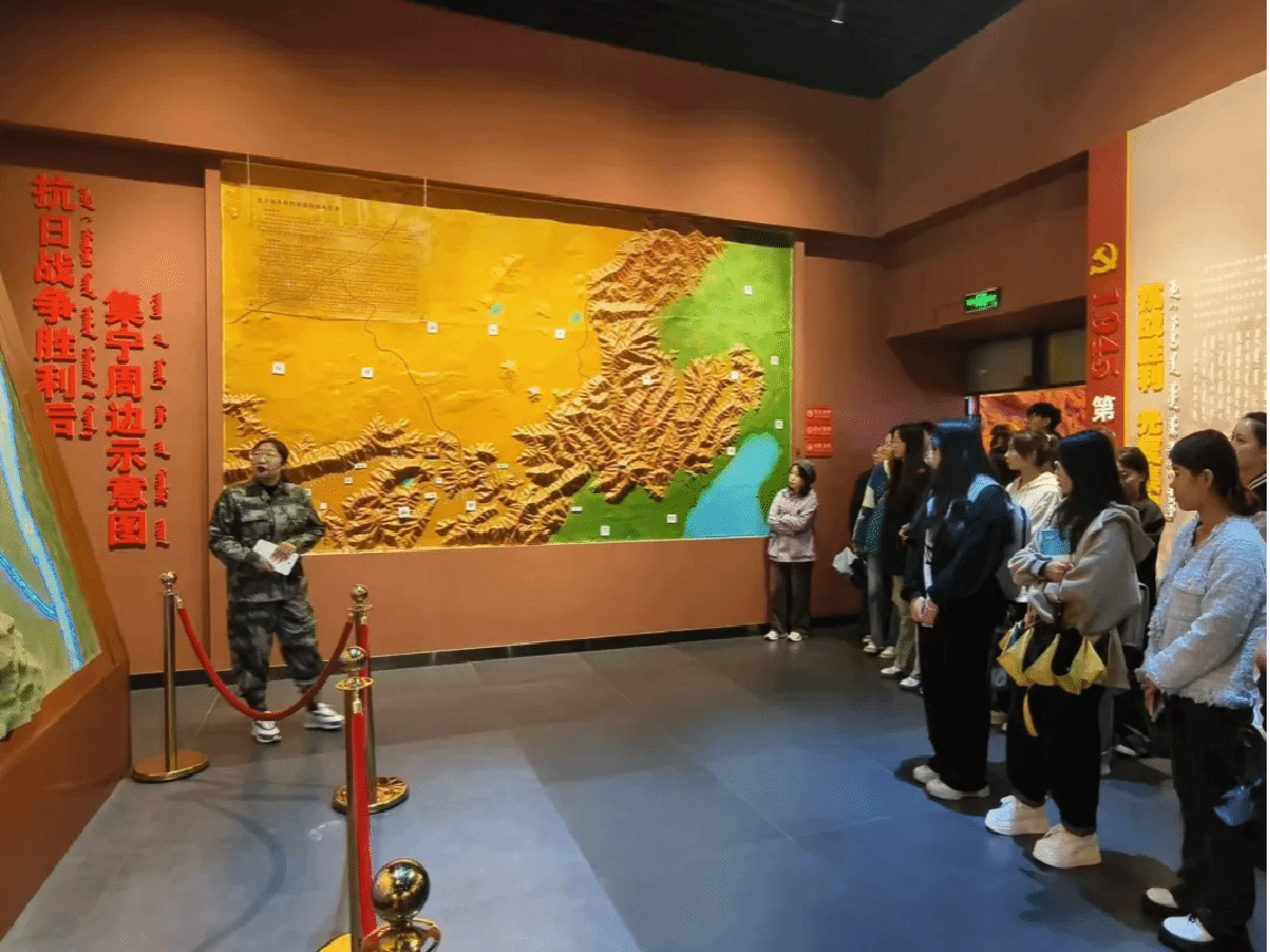在集宁战役纪念馆内,师生一起跟随讲解员,依次参观了集宁争夺战、大同集宁战役以及解放集宁战役等展厅。参观过程中,大家一边认真聆听讲解员的解说,一边驻足观看革命先辈留下的照片、遗物等珍贵史料。一幅幅历史图片、一件件珍贵实物,使大家从那段烽火硝烟的峥嵘岁月里得到了心灵的洗礼和升华;也深刻感悟到中国共产党人在集宁战役中不屈不挠的斗志、顽强抗争的精神和百折不挠、宁死不屈的爱国主义情怀。