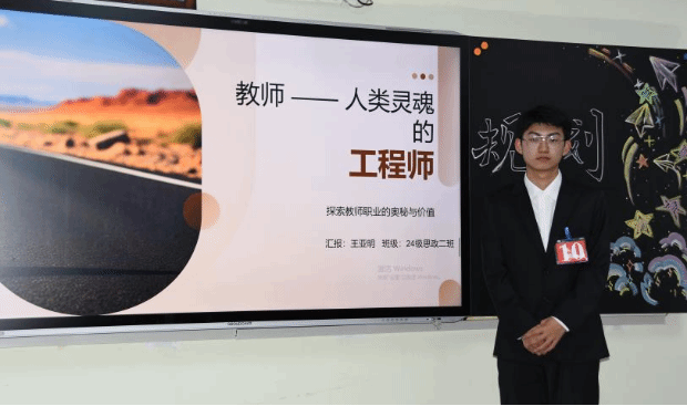 为加强高校生涯教育和就业指导,充分发挥“以赛促学、以赛促教、以赛促就业”的育人功能,增强大学生生涯规划意识和求职实践能力,11月21日晚上,马克思主义学院于主教419教室举办“筑梦青春志在四方 规划启航职引未来”大学生职业规划大赛。马克思主义学院党总支书记胡志胜、副书记段文智、韩宁老师、成格乐图老师、孙超强老师担任评委,2024级思想政治教育一班杨楠、2024级思想政治教育二班李婧主持比赛。