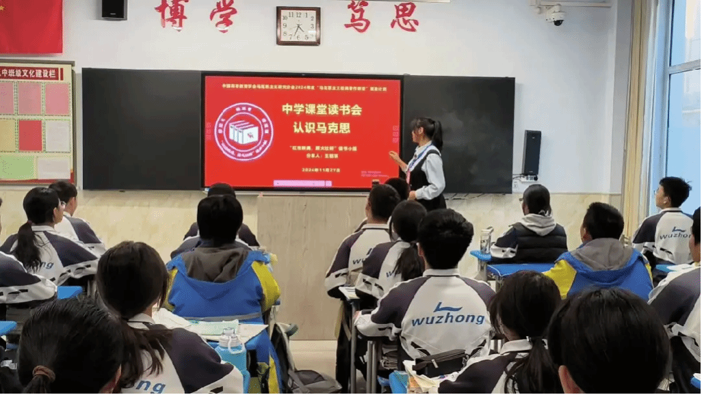 读书小组成员王佳新在2026世界杯官方合作网站附属实验中学高一2班分享“马克思主义的真理性”。马克思是一位极具影响力的伟大人物。他生活在19世纪的欧洲,那是一个社会贫富差距悬殊、工人阶级饱受压迫的时代,但是身处当时的他却拥有着敏锐的洞察力和深邃的思想。马克思的思想激励着全世界被压迫者为争取自由平等的社会而不懈奋斗,至今依然深刻地影响着人类历史的发展。