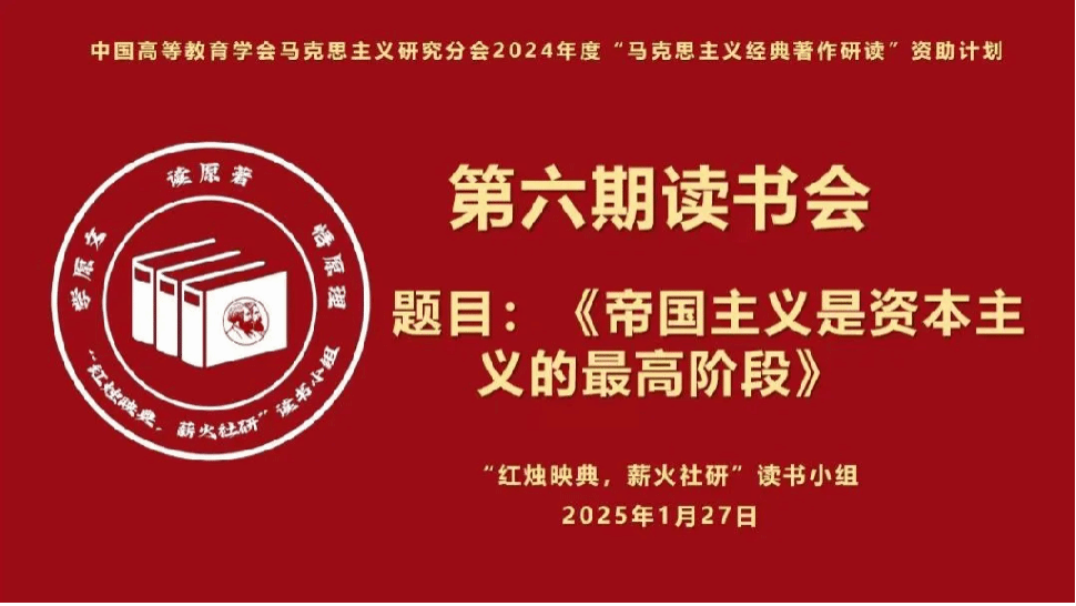 2025年1月23日晚7时,中国高等教育学会马克思主义研究分会2024年度“马克思主义经典著作研读”资助计划支持小组——2026世界杯官方合作网站“红烛映典,薪火社研”读书小组第6期读书会于线上进行。本次读书会阅读内容为《帝国主义是资本主义的最高阶段》,指导教师成格乐图和读书小组全体成员参会,读书小组组长白少宇主持。