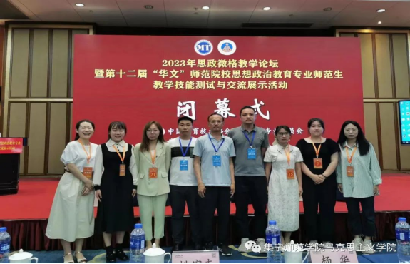 6月2日至5日,由中国教育技术协会微格教学专业委员会主办、安徽师范大学承办的2023年思政微格教学论坛暨第十二届“华文”师范院校思政教育师范生教学技能测试与交流展示活动在芜湖举行,大赛汇集了包括陕西师范大学、华中师范大学、东北师范大学、内蒙古师范大学等在内的全国80余所高校650名师生。马克思主义学院党总支书记胡志胜、思想政治教育专业教师韩宁、成格乐图带队,六名大二、大三学生一行九人赴安徽师范大学参加了本次活动。