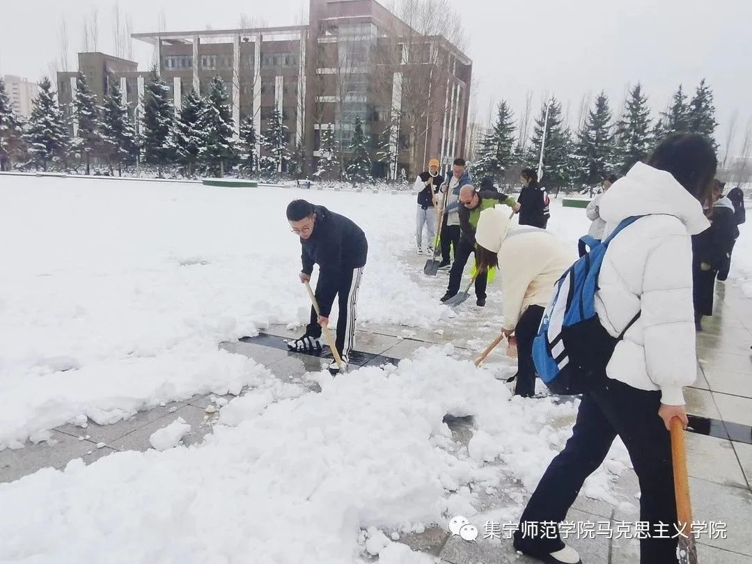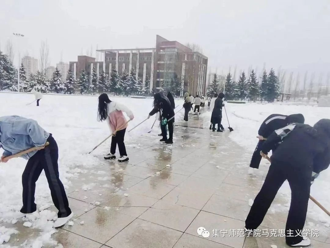 4月3日,我市迎来强降雪天气,持续的降雪将校园装扮得银装素裹,瑞雪在装点美景的同时也影响着我们学校的正常活动。为减少本轮雨雪冰冻天气对广大师生教学、生活造成的不利影响,马克思主义学院全体师生积极响应学校号召,于4月4日组织开展了“我为群众办实事”实践活动暨“我是共青团员我帮你”志愿服务活动。