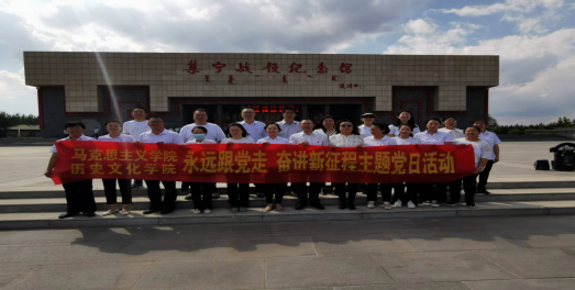 为庆祝中国共产党成立101周年,迎接党的二十大胜利召开,传承弘扬革命精神,坚定理想信念,凝聚奋进力量, 2022年7月1日下午,马克思主义学院、历史文化学院在集宁战役纪念馆联合开展“永远跟党走 奋进新征程”主题党日活动。党员干部集体参观了集宁战役纪念馆,深切缅怀革命先烈。在集宁战役纪念馆广场集体缴纳党费、在党旗前重温入党誓词,用铿锵有力的歌声唱响了《没有共产党就没有新中国》,表达了党员干部牢记共产党员政治责任和历史使命的决心。这次活动让全体党员干部接受了一次生动的党史爱国主义教育,激发了大家爱党敬业的工作热情。全体党员干部纷纷表示,通过鲜明的主题党日活动,了解了乌兰察布市的革命历史,对共产党人的精神谱系有了深刻的印象,激励大家勇往直前,担当作为,奋勇争先,切实推动学院各项工作高质量发展。