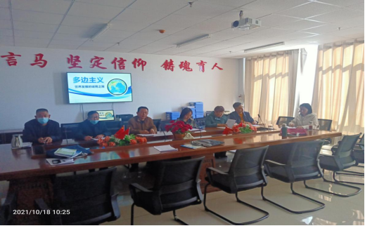 主讲教师张蕾介绍了本次专题——“多边主义:世界发展的破局之策”的教学设计和备课准备情况。