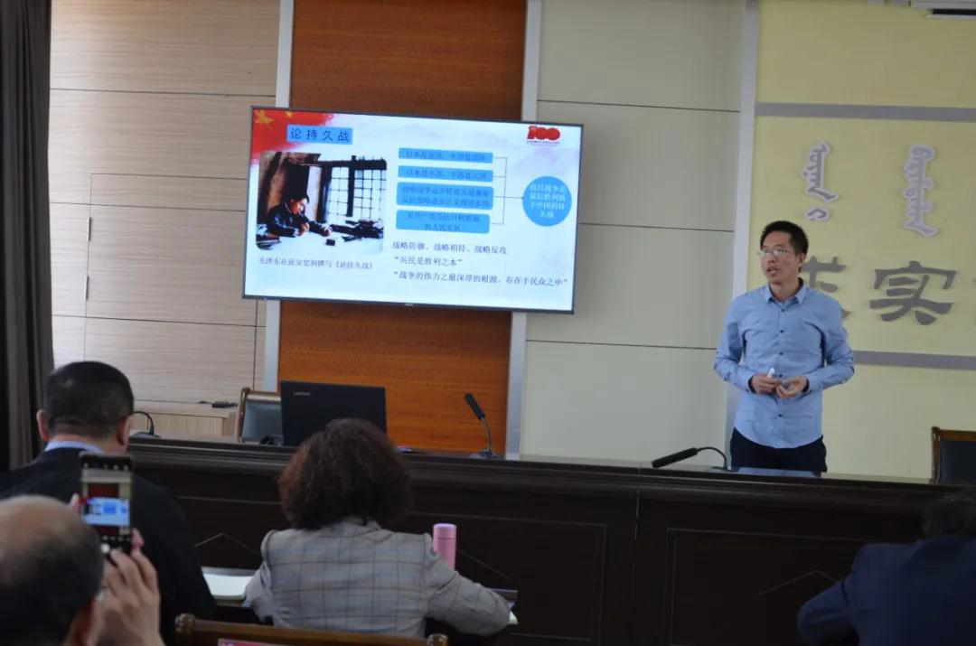 郭永兴老师从全民族抗日战争爆发、中国共产党是全民族抗日战争的中流砥柱、中国共产党长期奋斗的宝贵经验等方面对“全民族抗日战争的中流砥柱”这章进行了领读。