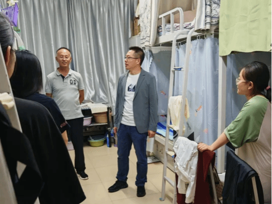 在学生宿舍,学院领导、老师与同学们亲切交谈,细致了解同学们的到校情况、新学期的学业规划及生活需求,希望同学们及时调整好作息,注重身体健康,以饱满的精神状态投入到学习工作中。