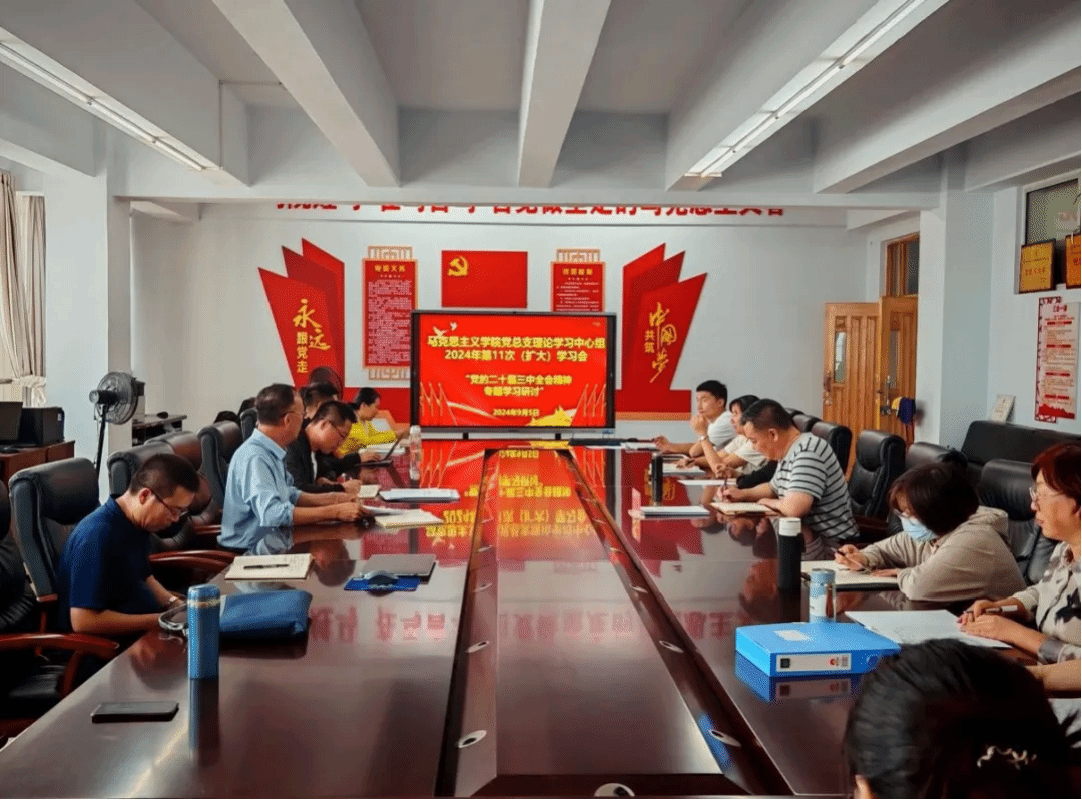9月5日下午,马克思主义学院党总支理论学习中心组举行2024年第11次(扩大)学习会,专题学习党的二十届三中全会精神,深入交流学习体会。校党委委员、统战部部长赵向军到会指导,学院党总支书记胡志胜主持学习会,全体党员参加。