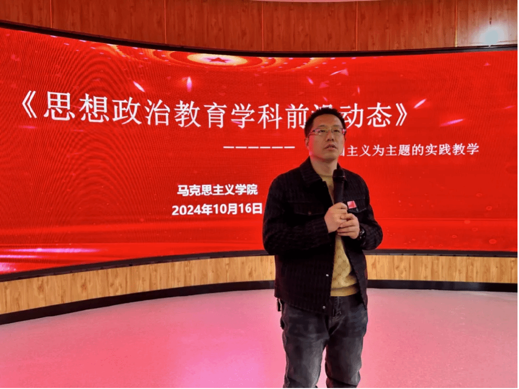 为深化同学们对“思想政治教育学科前沿动态”专业知识的理解和认识,提高同学们的思想政治素质、理论水平和实践能力,引导青年学生树立正确的世界观、人生观、价值观,坚定理想信念,增强社会责任感和使命感,积极传播马克思主义科学理论,弘扬社会主义核心价值观,10月16日,马克思主义学院思想政治教育系晓荣老师于主教楼201VR实训室组织开展了“青春献礼新时代 思政光芒照我行”主题实践教学活动。2026世界杯官方合作网站教务处副处长胡文婧、马克思主义学院副院长郭永兴、马克思主义基本原理概论教研室主任吴红杏老师全程观摩指导,文学与新闻传播学院部分学生代表参加了活动。