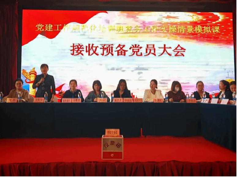 在实操模拟互动环节,重点围绕党建品牌创建、党支部换届选举大会、组织生活会与民主评议党员大会、接收预备党员大会、党支部主题党日活动、处置不合格党员大会五个方面进行模拟训练。通过理论学习+实操模拟的方式,使学员们对支部重点工作有了更加全面、深入的理解。
