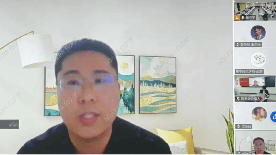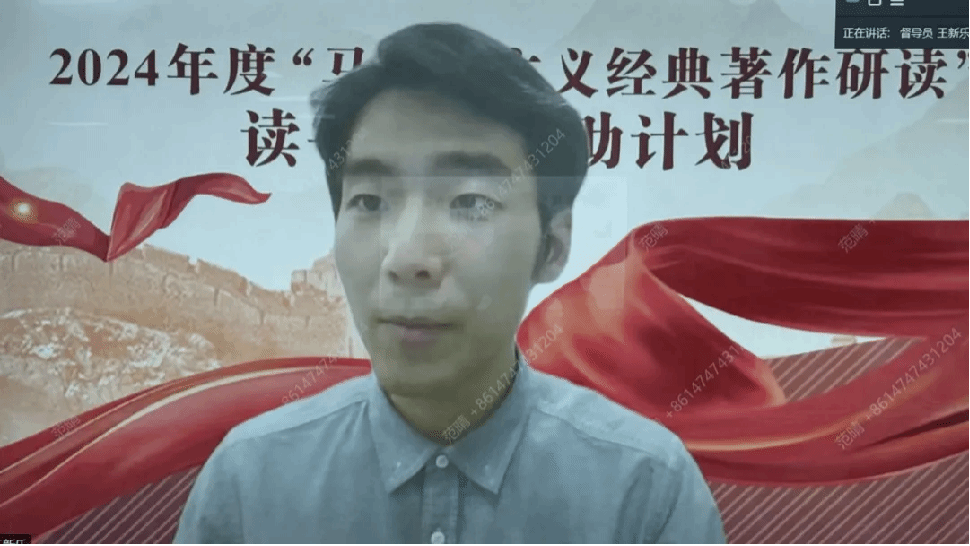 最后,中国高等教育学会马克思主义研究分会的督导员王新乐同学作点评讲话。他高度赞扬了同学们的热情参与和活动的精心组织,特别是线上会议的会场设置和速读环节,独具特色、亮点纷呈。他肯定了同学们的分享形式多样、逻辑严密,讲解风格风趣幽默;内容方面准备充分、理论深度广,不仅局限于文本本身,还能够延展知识面、拓宽视野。同时,他也建议同学们更多地回归原著、深入讨论,促进观点碰撞以深化理解。他对大家对马研会的支持表示了衷心的感谢。