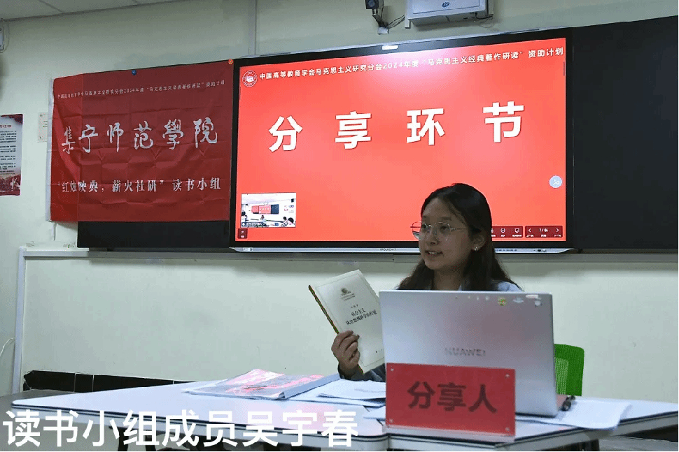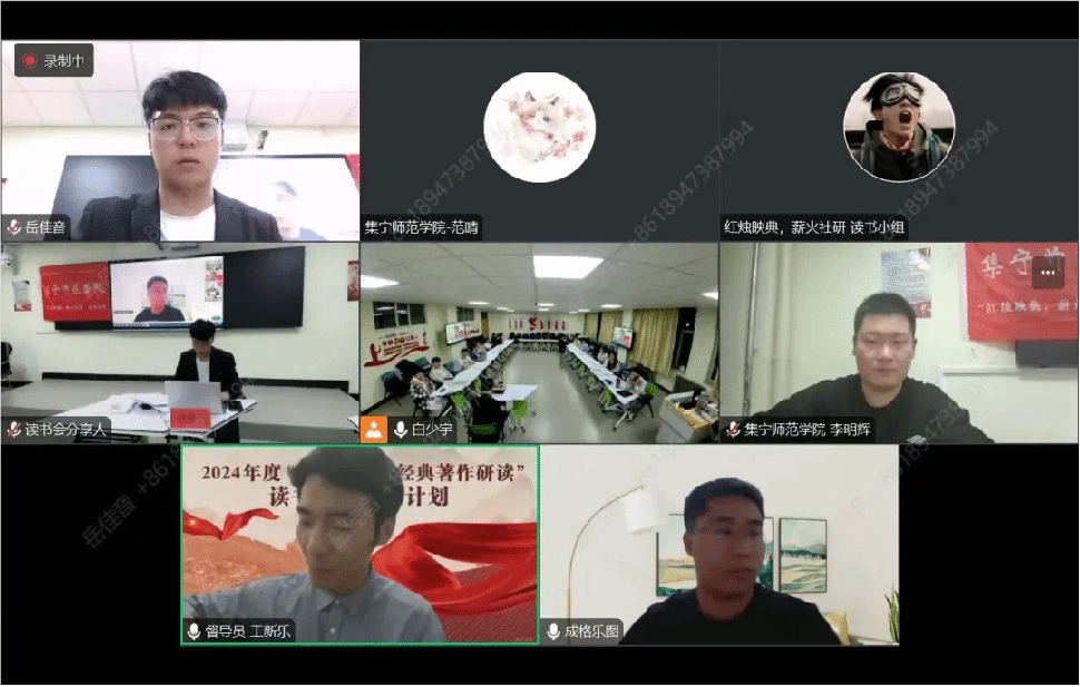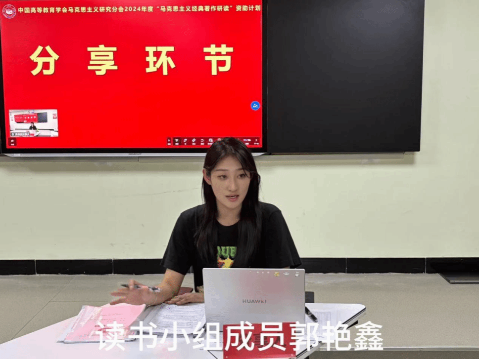 指导教师成格乐图作点评。他首先对马研会督导员王新乐同学的参会表示热烈欢迎,并对活动的顺利开展给予了高度评价。他指出,整个活动准备充分、组织有序,同学们认真研读、深刻感悟,研读效果显著。随后,他对同学们分享的内容进行了逐一点评,并提出了进一步阅读建议。一是要结合前言、导言和序言深入研读原著,全面理解原著内容;二是读书会内部要分享读书笔记,促进思维碰撞;三是要将学习理论、研究理论和宣传理论有机结合,践行思政专业学生的使命和担当。