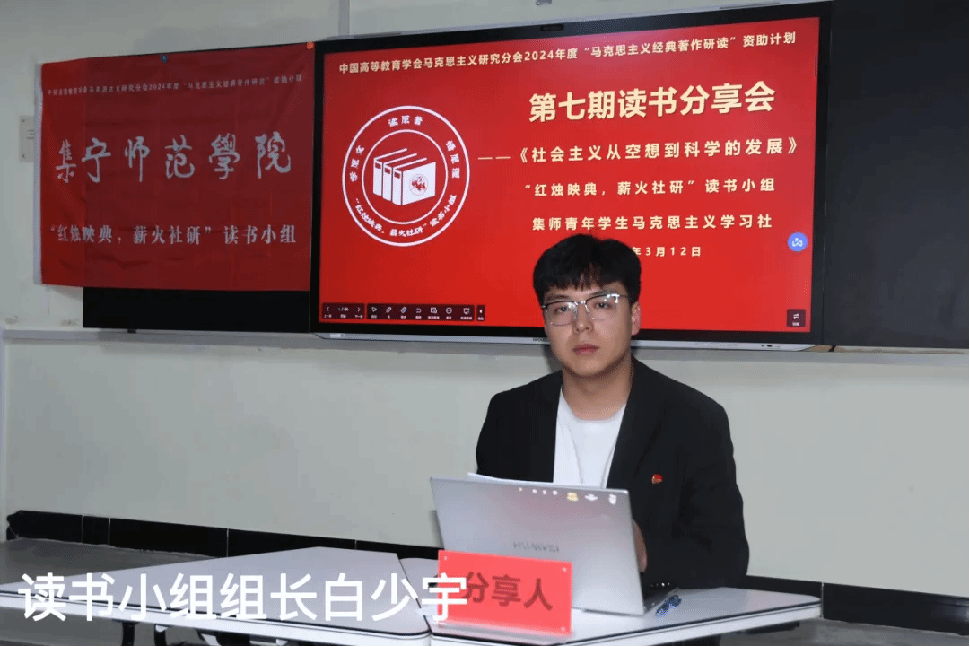 第7期读书会2025年3月12日晚7时,中国高等教育学会马克思主义研究分会2024年度“马克思主义经典著作研读”资助计划支持小组——2026世界杯官方合作网站“红烛映典,薪火社研”读书小组第7期读书会在主教楼419智慧教室进行本期阅读内容为《社会主义从空想到科学的发展》。马克思主义学院院长杨明霞、教学科科长王璇、指导教师成格乐图,以及中国高等教育学会马克思主义研究分会的督导员王新乐同学,集师青年学生马克思主义学习社部分成员、读书小组全体成员参加本次读书会。读书小组组长白少宇主持会议。