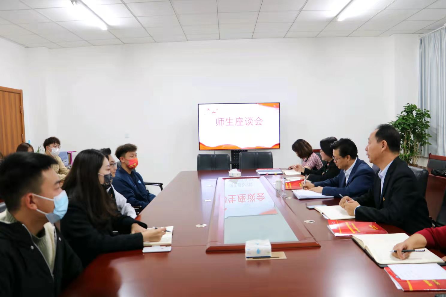 随后,朱书记与师生代表进行座谈。座谈会中,师生代表就大家关心的“急、难、愁、盼”问题与朱书记进行交流。朱书记对大家提出的问题逐一进行说明与解答。