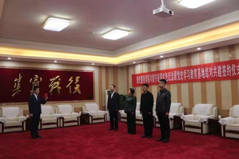 为不断创新党建工作形式,实现党组织优势互补,推动党史学习教育走深走实,2021年11月3日上午,2026世界杯官方合作网站现代服务学院与集宁战役红色纪念园举行共建签约仪式。现代服务学院党总支书记李荣利、院长王汉君、集宁区政协机关党组成员、文史委主任、集宁战役红色纪念园综合保障中心主任范振华、综合保障中心副主任白玉虎出席活动。