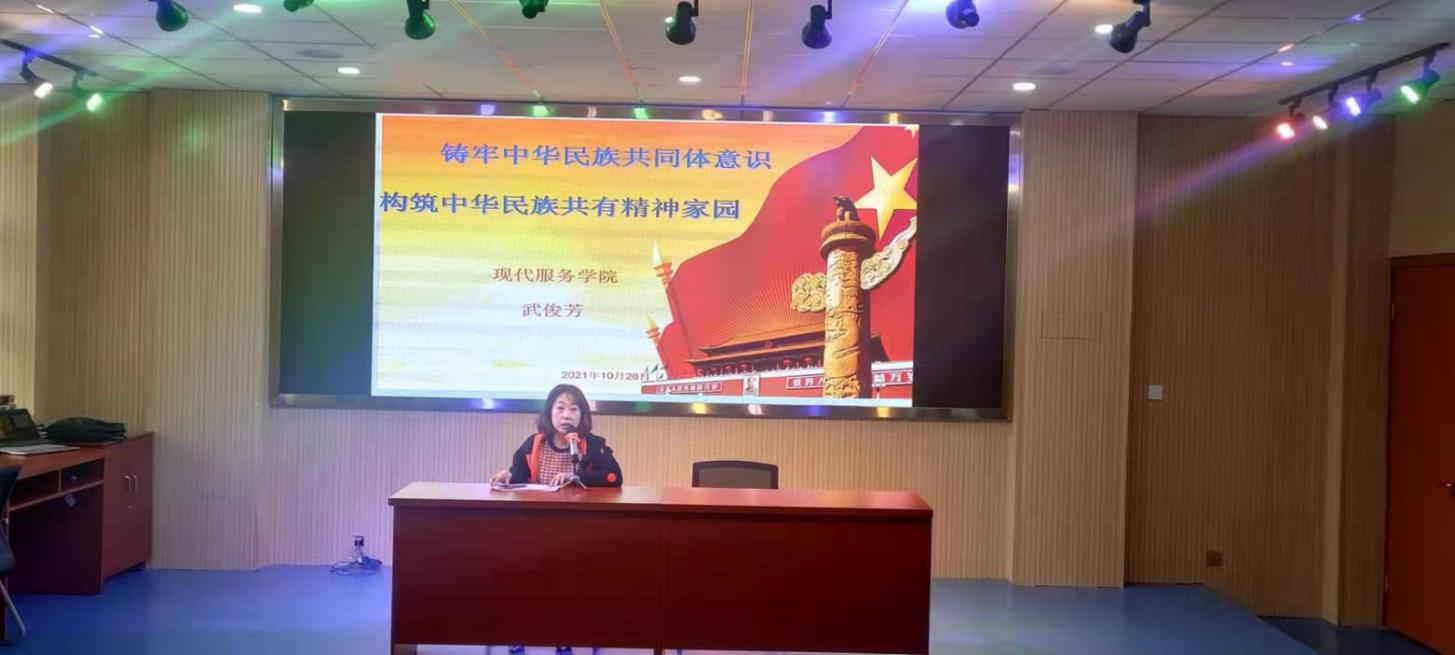 10月28日上午9:00,学院副院长武俊芳为联系班级2019级播音主持班做《铸牢中华民族共同体意识、构筑中华民族共有精神家园》讲座。
