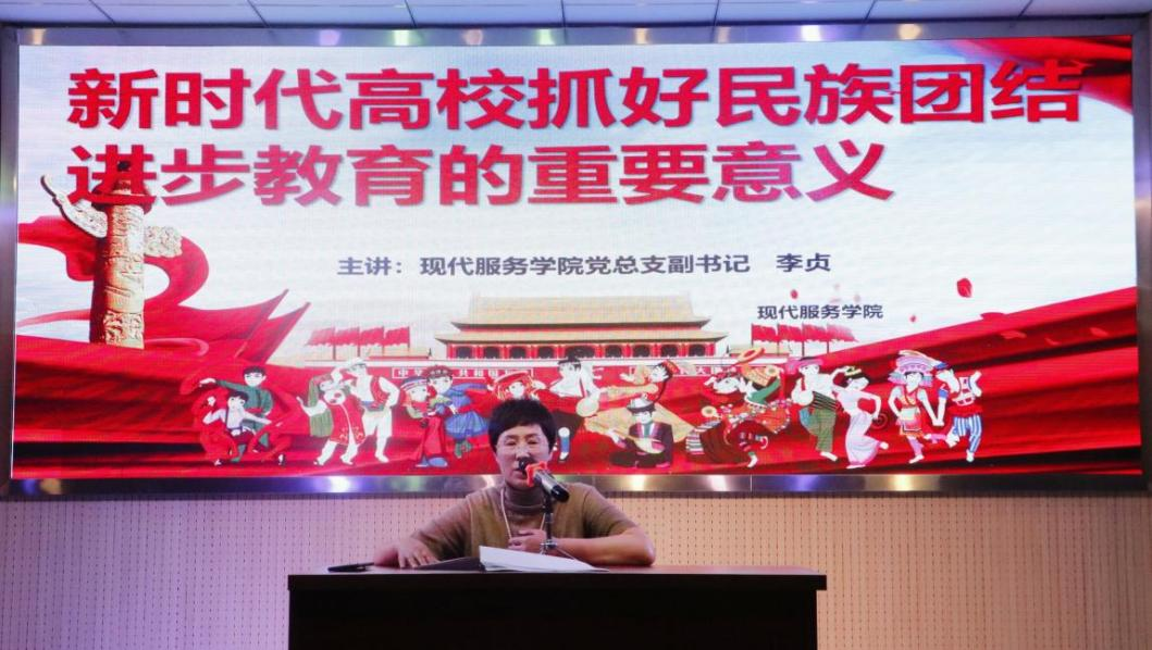 10月20日下午5:00,学院副书记李贞为联系班级2018级旅游管理专业1、2班做《新时代高校抓好民族团结进步教育的重要意义》讲座。