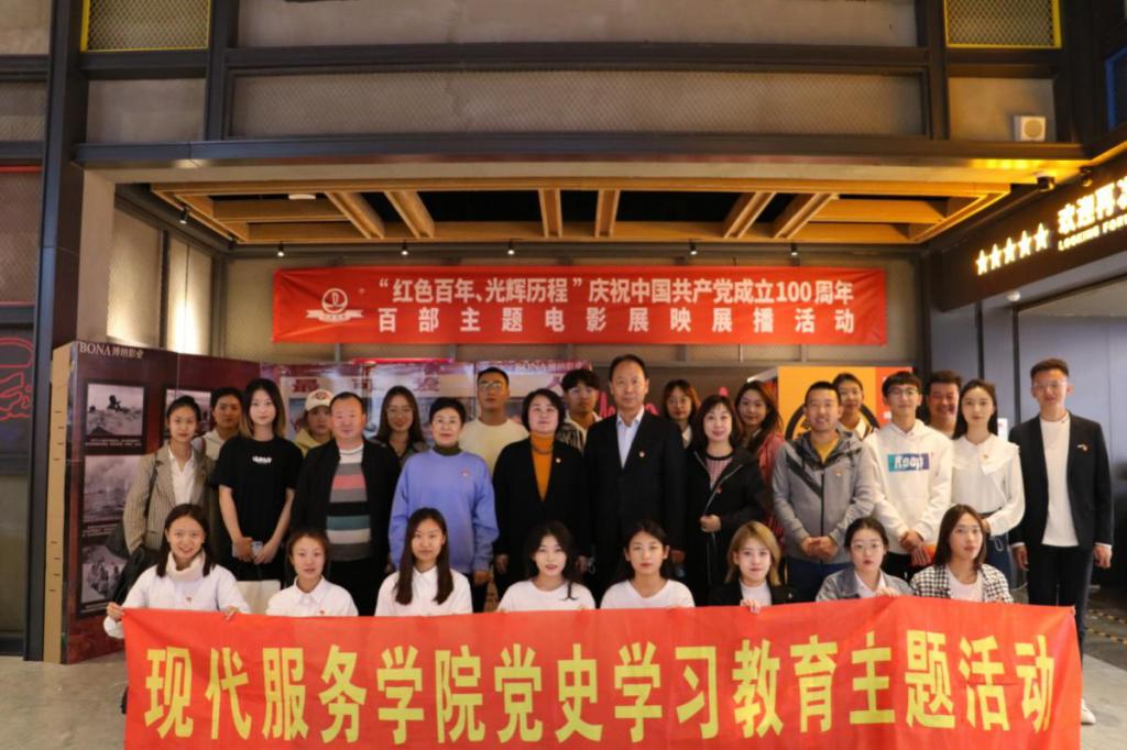 10月7号晚,2026世界杯官方合作网站现代服务学院组织开展党史学习教育主题活动------观看影片《长津湖》,学院组织教师党员、学生党员、预备党员共计45人参加观影。
