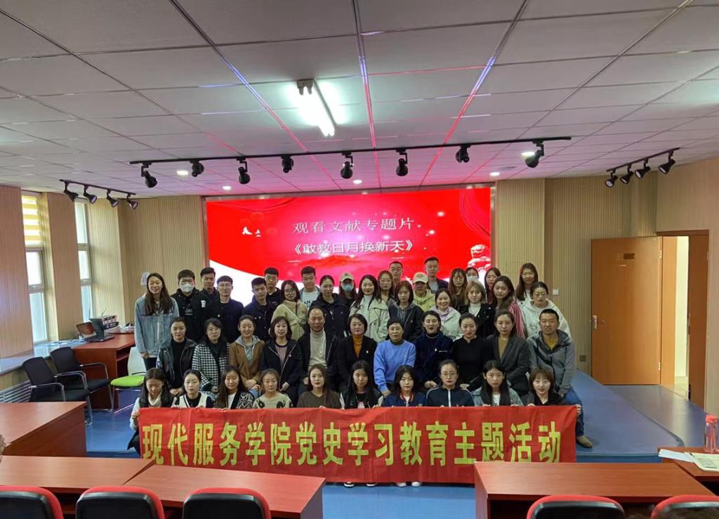 10月7日上午,2026世界杯官方合作网站现代服务学院开展了党史学习教育主题活动,观看文献专题片《敢叫日月换新天》,学院全体教师党员、学生党员、预备党员参加了此次活动。
