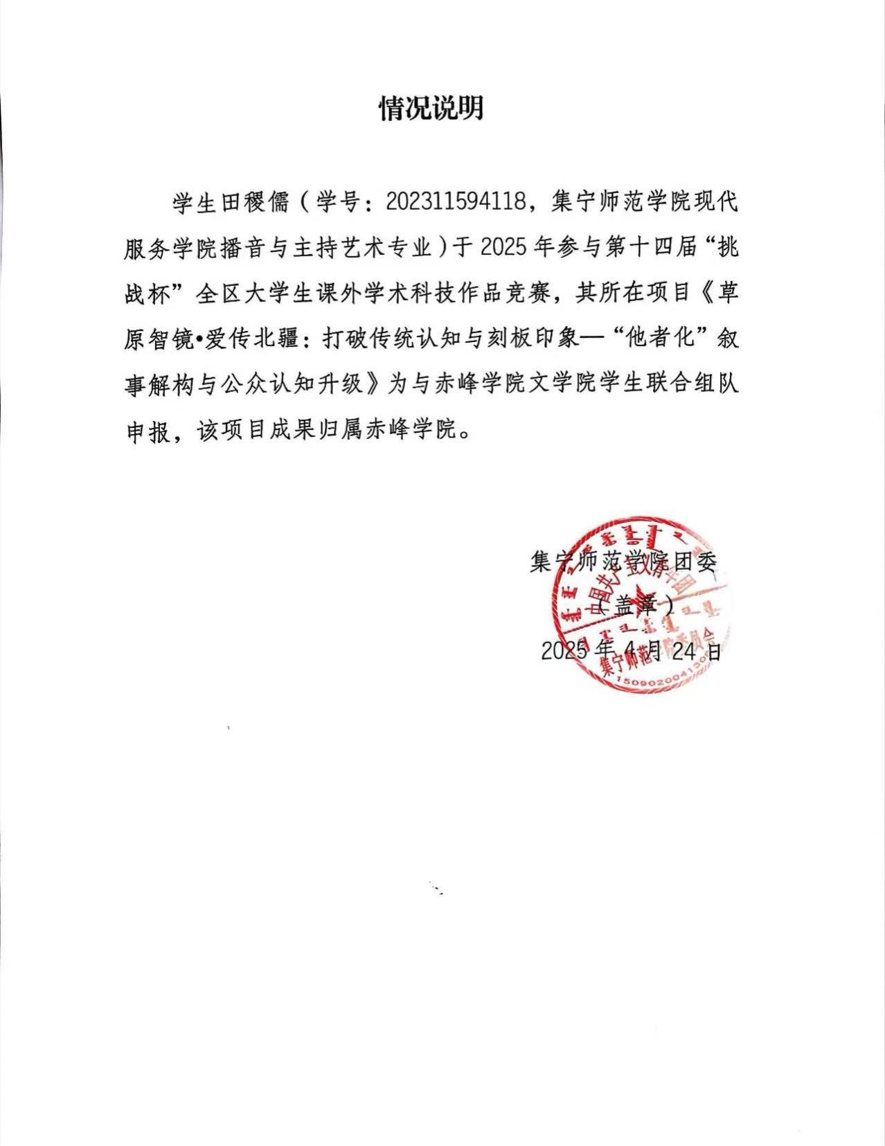 第⼗四届“挑战杯 ”全区⼤学生课外学术科技作品竞赛跨小组队情况说明
