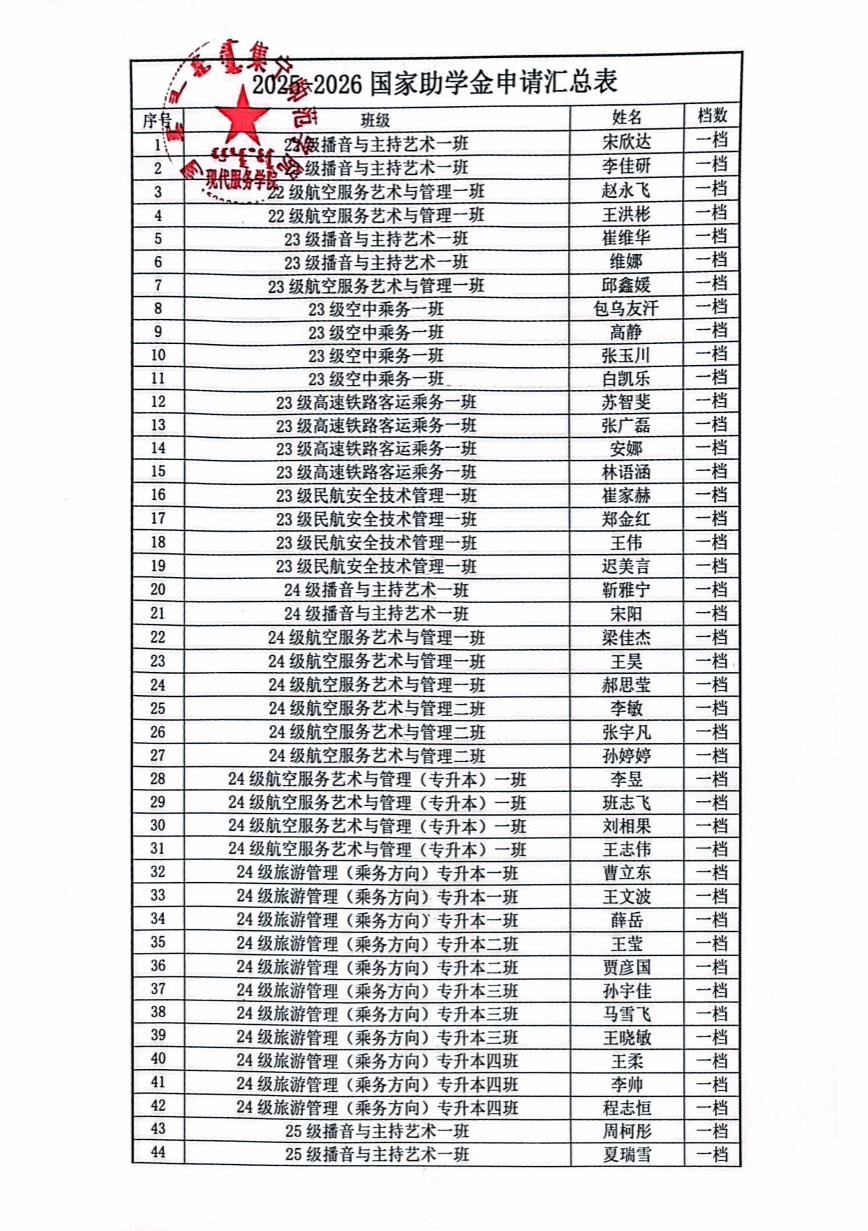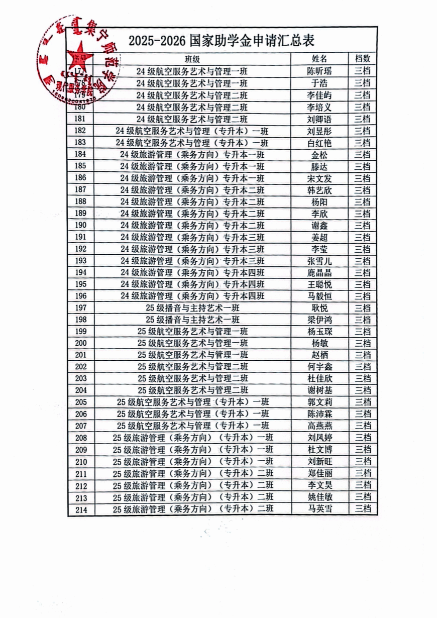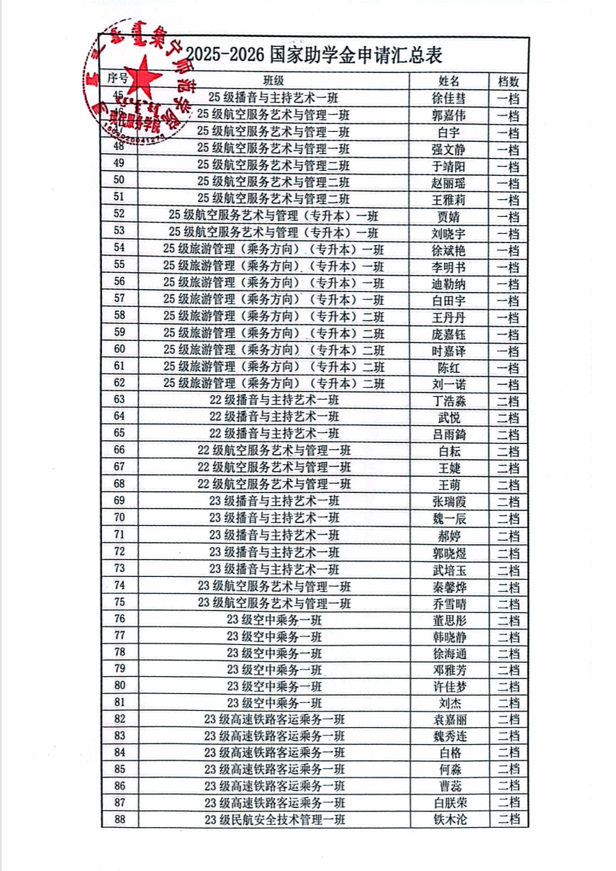 现代服务学院2025—2026学年助学金评选推荐结果公示
