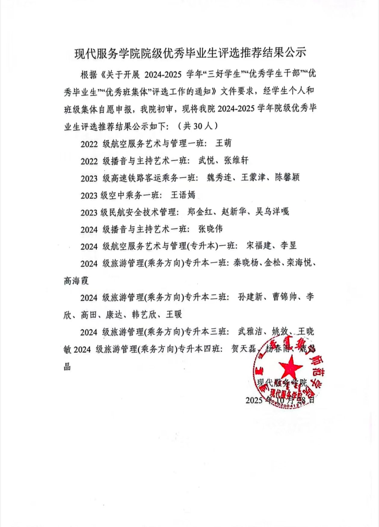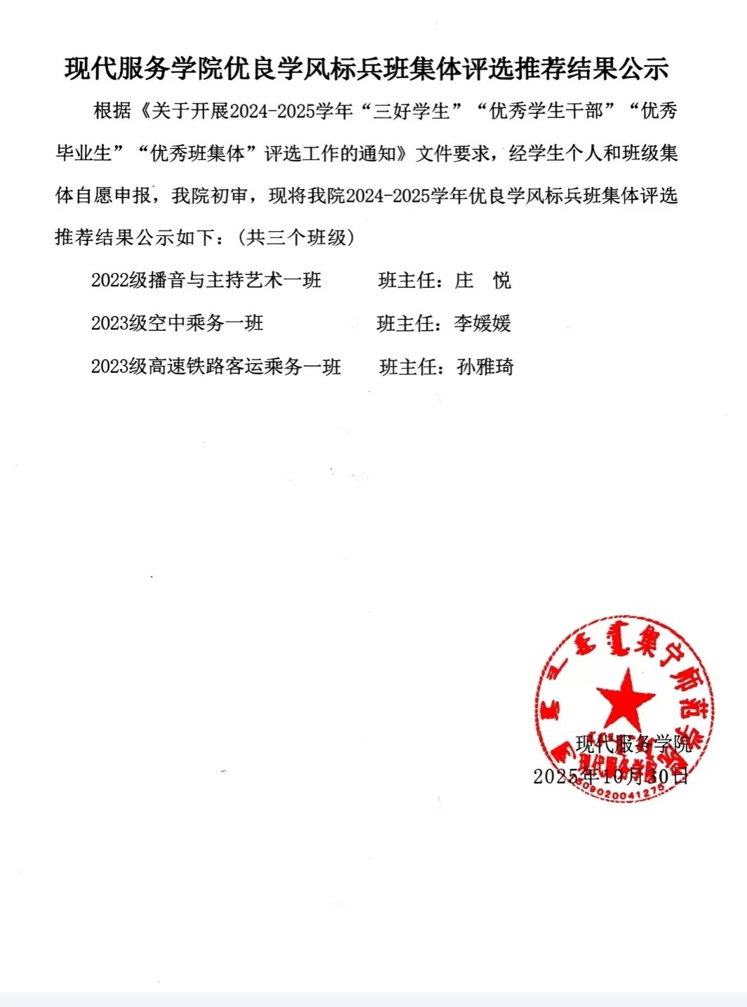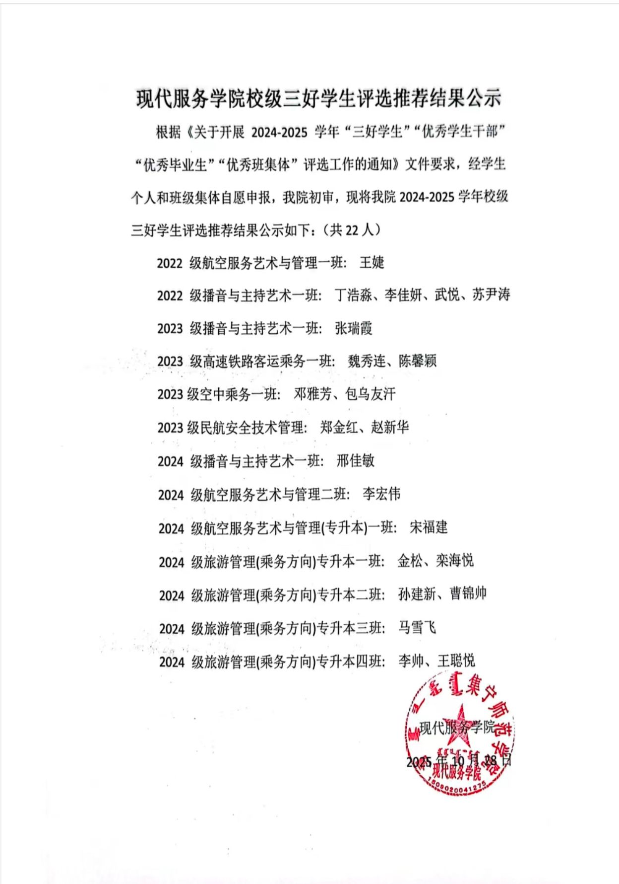 现代服务学院2024—2025学年院校两级“三好学生”“优秀学生干部”“优秀毕业生”“优秀班集体”评选工作的通知