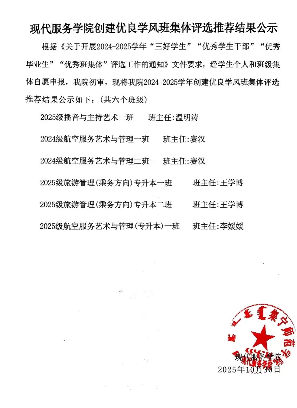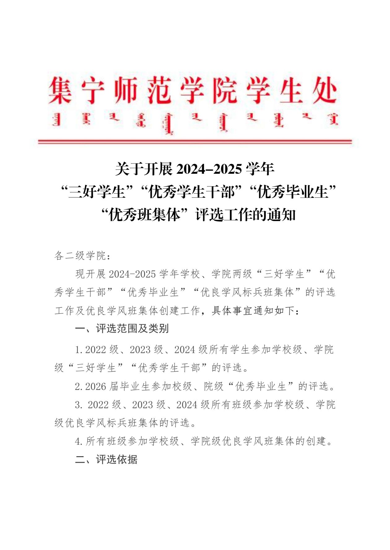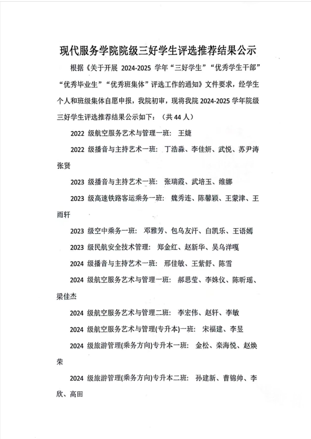 现代服务学院2024—2025学年院校两级“三好学生”“优秀学生干部”“优秀毕业生”“优秀班集体”评选工作的通知