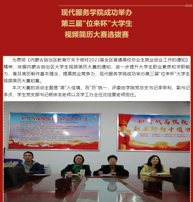 现代服务学院成功举办第三届“位来杯”大学生视频简历大赛选拔赛