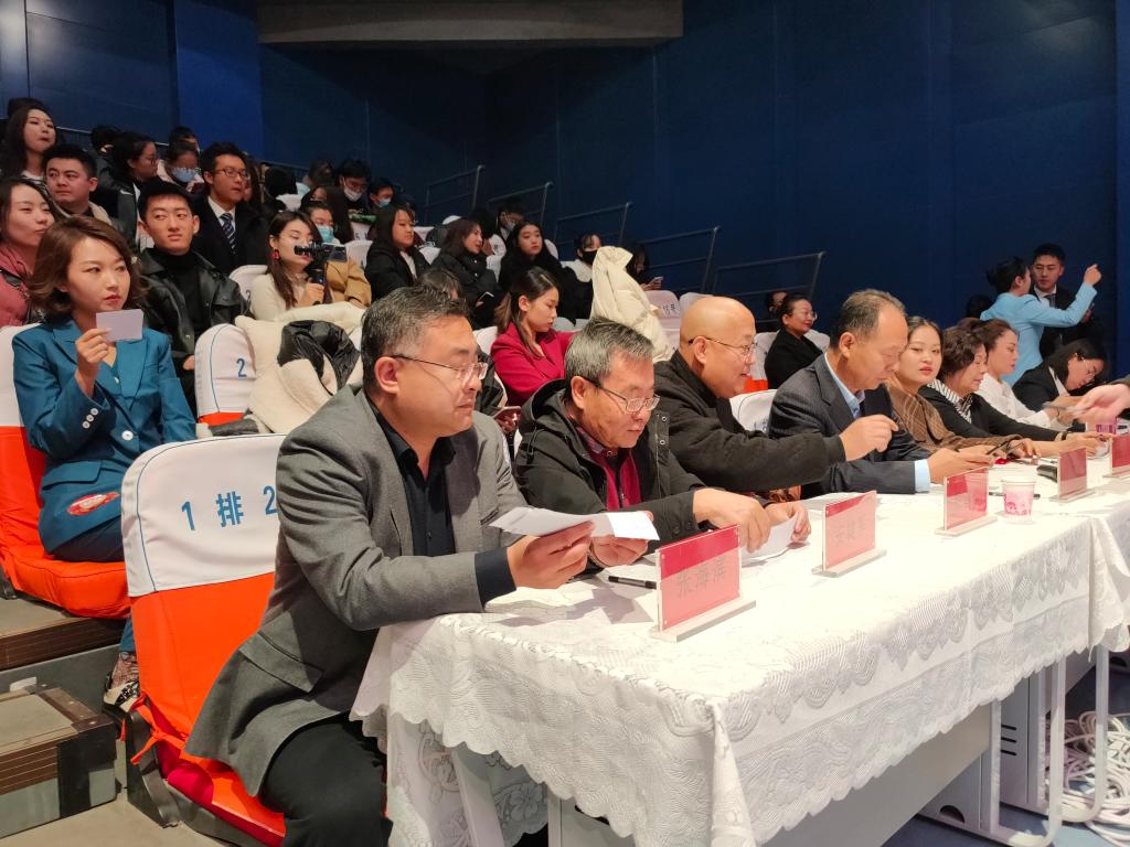 此次活动还邀请到现代服务学院院长王汉君,现代服务学院客座教授安健军担任主持人基本功大赛决赛的评委。比赛当中,安健军教授为参赛选手和观众朋友现场示范,朗诵了陆游的《钗头凤》,赢得了在场选手和观众的热烈掌声。
