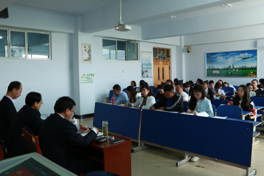 现代服务学院黄中书记作讲话。他指出,开展“不忘初心,牢记使命”主题教育是党的十九大作出的重要决定,是以习近平同志为核心的党中央统揽伟大斗争、伟大工程、伟大事业、伟大梦想作出的部署,具有十分重大的意义。我院全体党员要切实把思想和行动统一到习近平总书记重要讲话精神上来,统一到中央和自治区党委决策部署上来,要把主题教育与庆祝新中国成立70周年结合起来,同落实当前改革发展稳定各项任务结合起来,加快转型发展,为把世界杯官网建设成特色鲜明的高水平应用型师范大学贡献我们的力量。