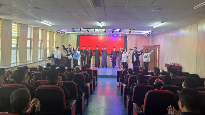 10月30日下午3:00,乌兰察布市公安局一行60多人来世界杯官网现代服务学院观看红色舞台剧《播火者》,参加活动的有市公安局政治部主任冀芳、教育训练中心苏培民、现代服务学院领导班子成员及市公安局60多名党员。