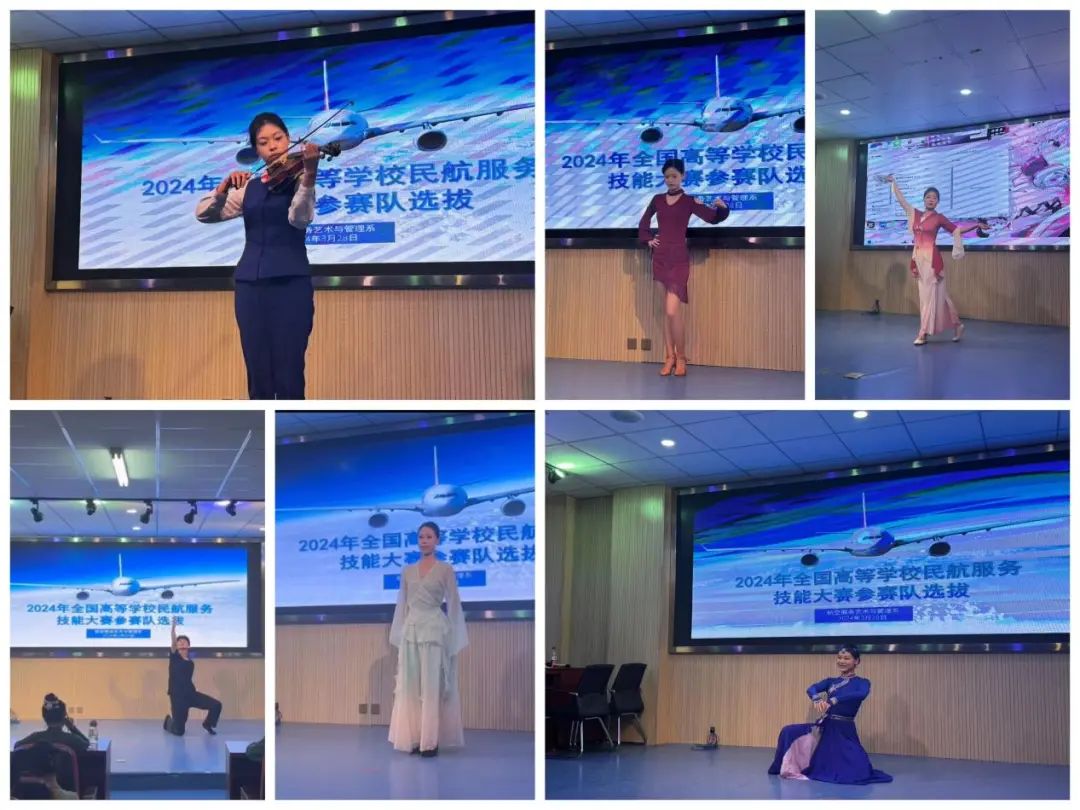 为做好选拔,提前制定了选拔要求和评分标准。通过初选共有50名同学进入到复选环节,十人一组依次进行自我介绍及才艺展示,同学们精彩的舞蹈、歌曲、小提琴独奏等才艺表演赢得了阵阵掌声和欢呼。最终选拔出的30名参赛队队员将在2024年7月的全国高等院校民航服务技能大赛上和全国上百所院校的学生们同台竞技。