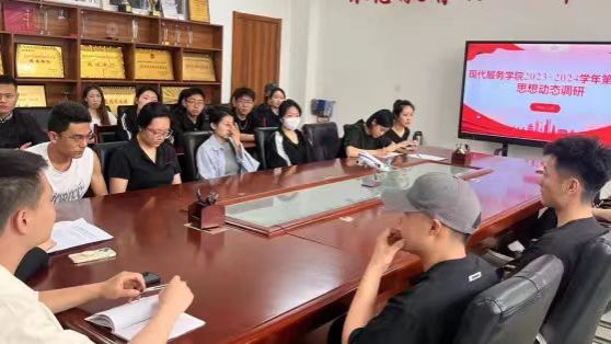 2024年5月25日,现代服务学院在二楼会议室召开思想动态调研会议,学团办工室主任沈佳雯及辅导员熊进参加会议。参加会议的还有学生会干部和各班班长、团支书。