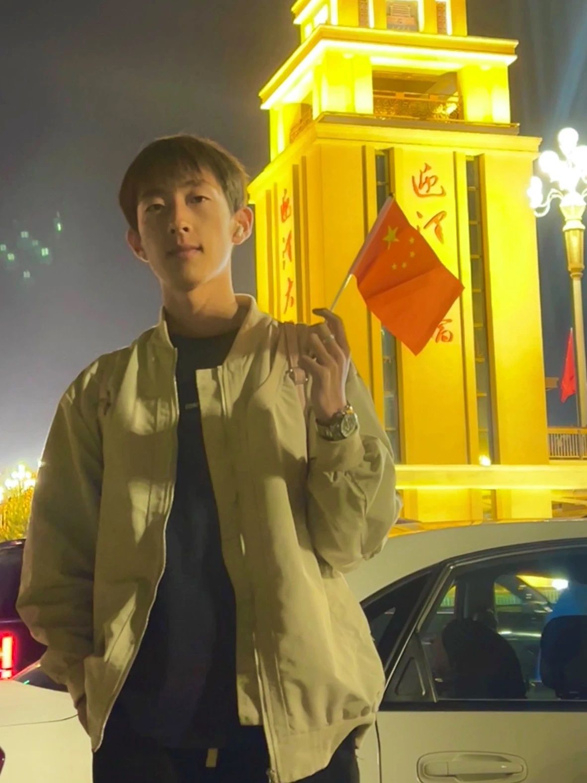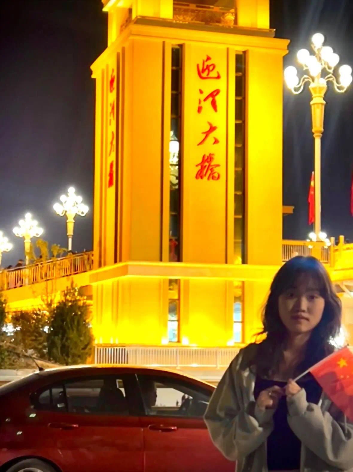 有一种画面叫“我与国旗合影