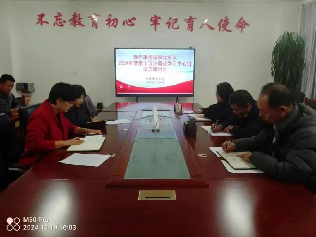 12月19日,校党委副书记李景杰巡听现代服务学院党总支理论学习中心组2024年第15次集体学习会。会议围绕学习习近平文化思想专题进行集中学习和交流研讨。现代服务学院党总支理论学习中心组成员、各系主任参加会议,学院副院长刘春芳列席会议现代服务学院党总支书记李荣利主持会议。