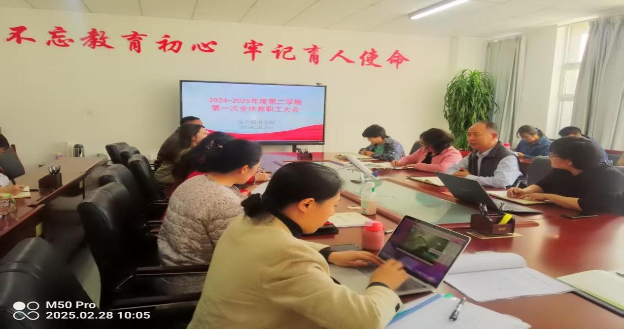 为确保新学期各项工作的顺利开展,扎实推进本科教育教学审核评估工作,2月28日上午,现代服务学院在会议室召开期初工作会议。会议由院长王汉君主持,全体教师参会。