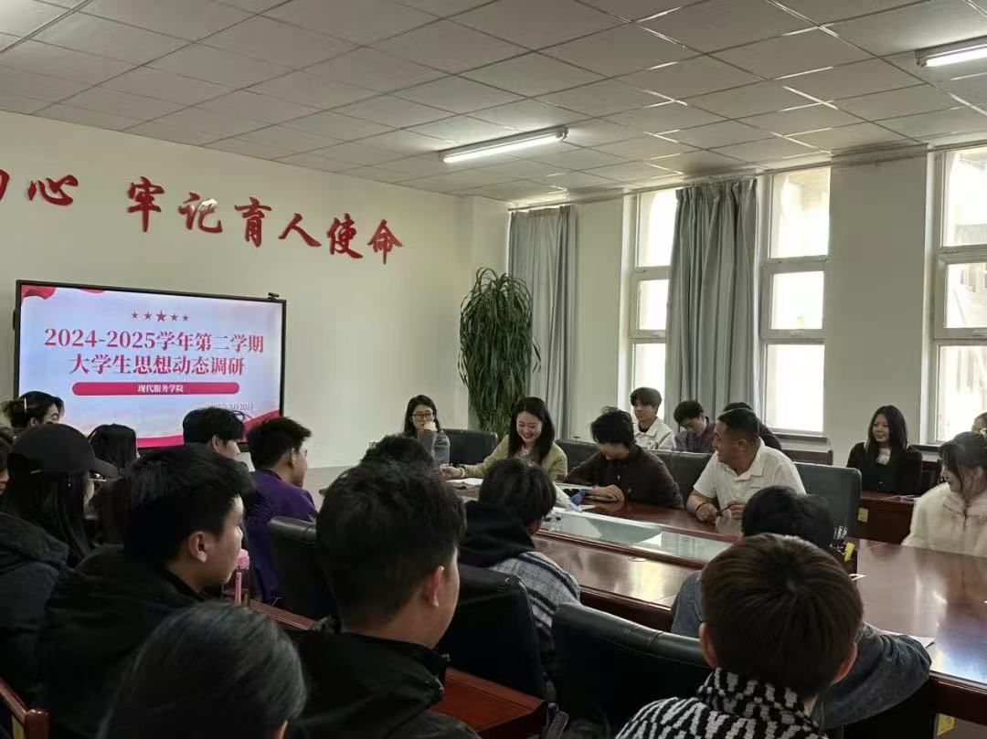 为准确把握新学期学生思想动态,进一步加强思想政治工作的针对性和实效性,3月20日,学院于二楼会议室召开2025年春季学期学生思想动态调研座谈会。学院党总支副书记毛慧、学团办主任沈佳雯、校企合作主任王鹏及各年级学生代表参加会议。