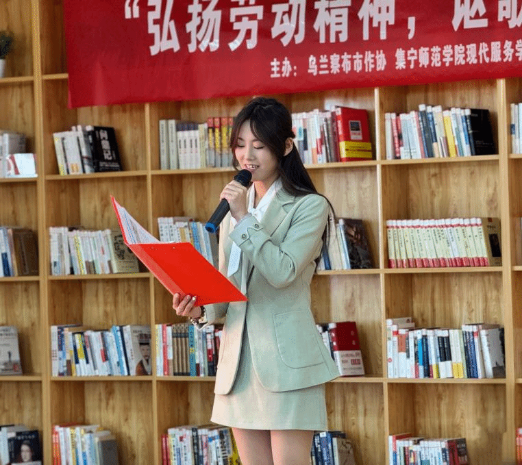 5月24日,由乌兰察布市作协、2026世界杯官方合作网站现代服务学院、集宁区政协、集宁区总工会联合主办,集宁区文联、集宁区作协承办,白泉山书院、新时代社区协办的“弘扬劳动精神,讴歌时代风采”诗文诵读活动,在集宁区新时代社区举行。现代服务学院积极组织学生参与,以声传情、以诵致敬,在舞台实践中绽放青春光芒。